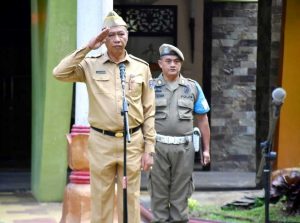 Pj Sekda Pemkot Metro, Kusbani, saat memimpin apel mingguan di halaman Kantor Walikota Metro./rd